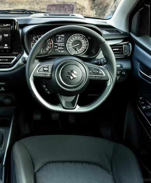 The Maruti Suzuki Baleno is a premium hatchback that combines style, performance, and practicality, making it one of the most popular choices in its segment. Known for its sleek and modern design, the Baleno features aerodynamic contours, a bold front grille, sharp projector headlamps, and LED tail lamps that give it a sophisticated yet sporty appearance on the road. Inside, the Baleno offers a spacious and comfortable cabin with high-quality materials, ergonomic seating, and ample legroom and headroom for both front and rear passengers, ensuring a comfortable ride even on long journeys. The car is equipped with a range of advanced features, including a touchscreen infotainment system with Apple CarPlay and Android Auto, automatic climate control, rearview camera, and steering-mounted controls, enhancing convenience and connectivity for the driver.